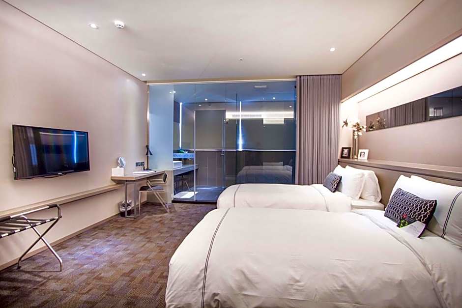 Providing free toiletries, this twin room includes a private bathroom with a walk-in shower, a bidet and a hairdryer. The air-conditioned twin room provides a flat-screen TV with cable channels, soundproof walls, a wardrobe, a safe deposit box as well as city views. The unit offers 2 beds.